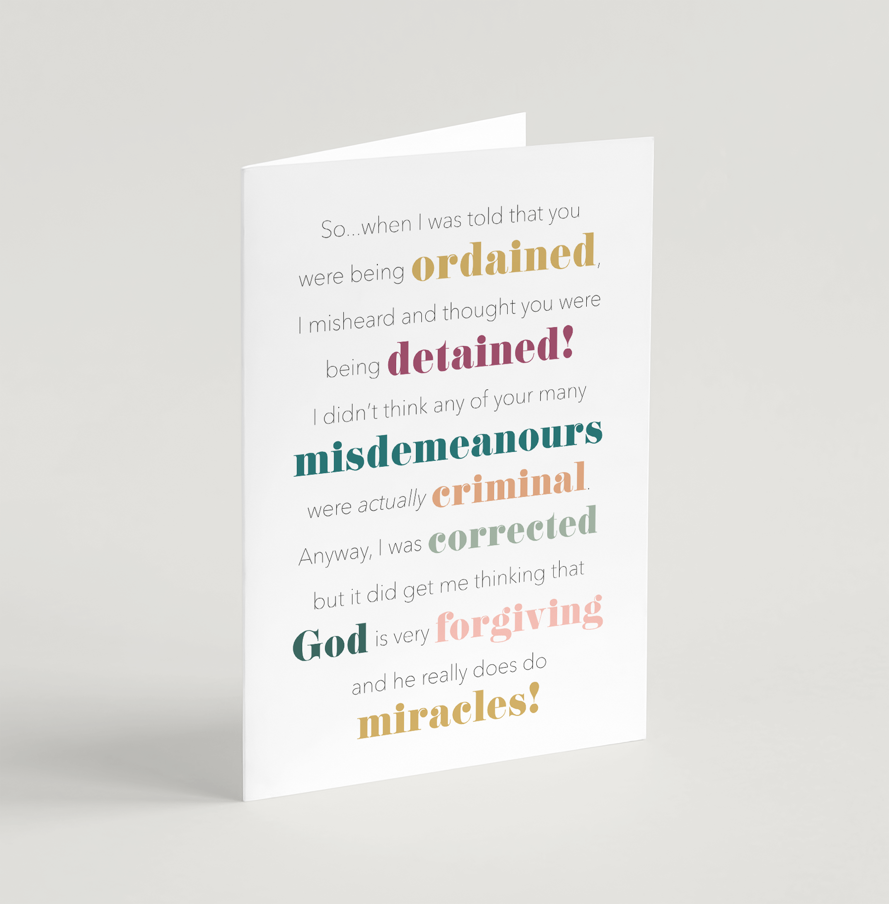 Forgiving Funny Ordination Card