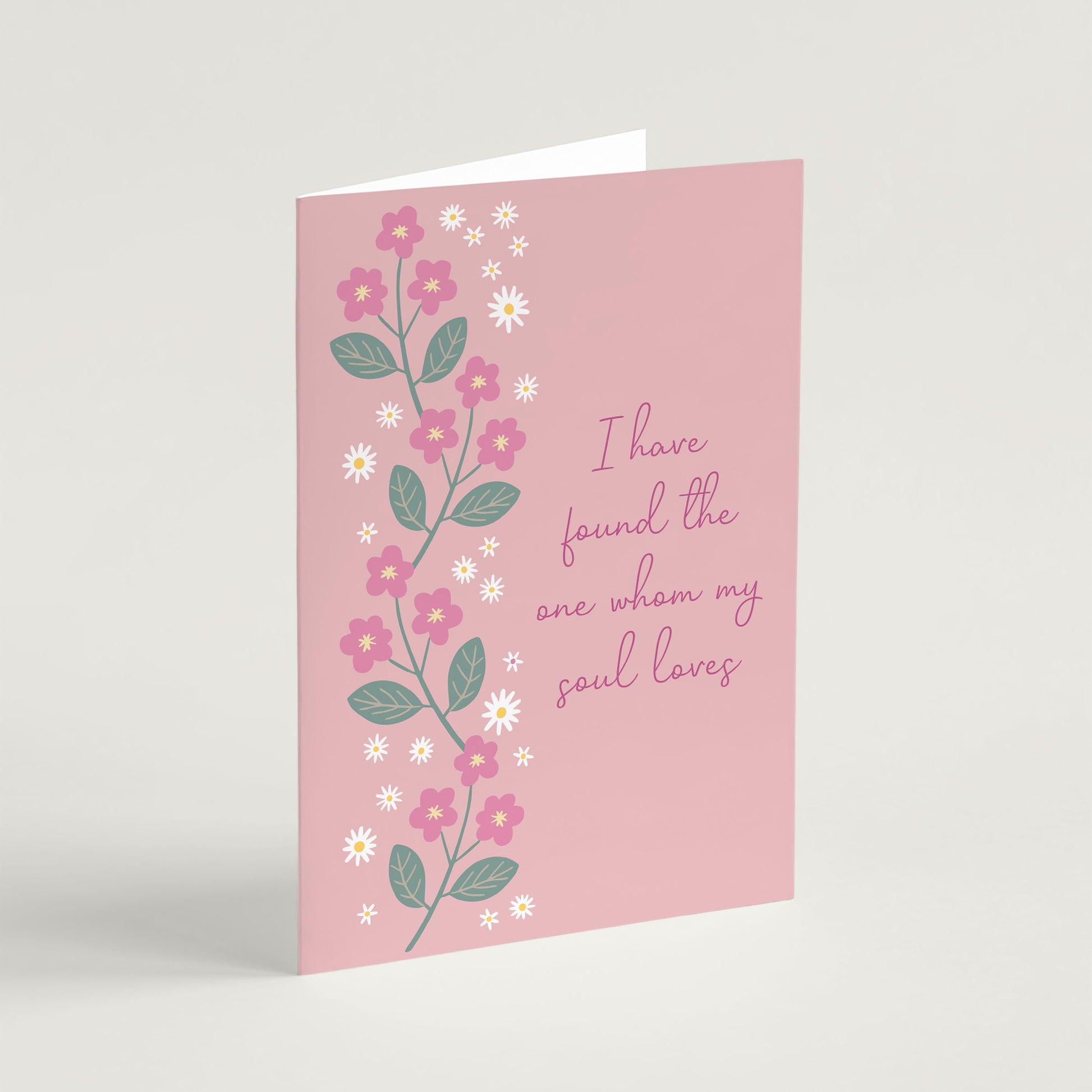 This A6 Christian anniversary or Valentine's card reads 'I have found the one whom my soul loves' and on the inside -