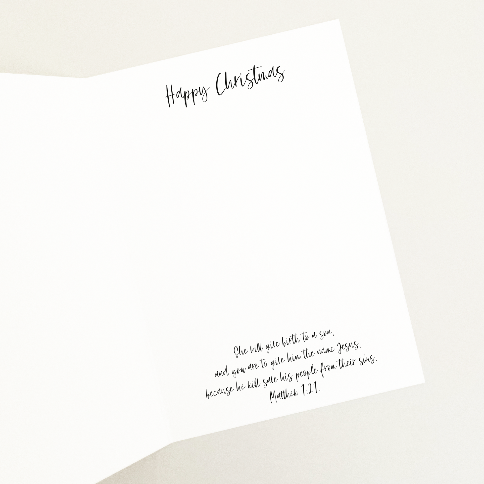 Each card includes this verse inside 'She will give birth to a son, and you are to give him the name Jesus, because he will save his people from their sins.' Matthew 1:21.