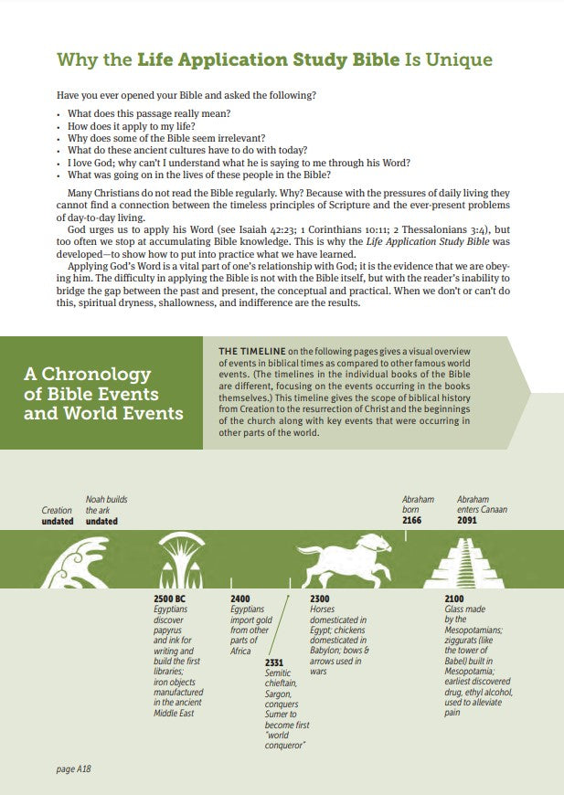Winner of the 2020 Christian Book Award for Bible of the Year! Trusted & Treasured by Millions of Readers over 30 years, the Life Application® Study Bible Is Today’s #1–Selling Study Bible Now it has been thoroughly updated and expanded, offering even more relevant insights for understanding and applying God’s Word to everyday life in today’s world. Discover How You Can Apply the Bible to Your Life Today With a fresh two-color interior design and meaningfully updated study notes and features, this Bible will help you understand God’s Word better than ever. It answers the real-life questions that you may have and provides you practical yet powerful ways to apply the Bible to your life every day. Study the stories and teachings of the Bible with verse-by-verse commentary. Gain wisdom from people in the Bible by exploring their accomplishments and learning from their mistakes. Survey the big picture of each book through overviews, vital statistics, outlines, and timelines, and grasp difficult concepts using in-text maps, charts, and diagrams—all to help you do life God’s way, every day. Features: (Enhanced, updated, and with new content added throughout)• Now more than 10,000 Life Application® notes and features • Over 100 Life Application® profiles of key Bible people • Introductions and overviews for each book of the Bible • More than 500 maps & charts placed for quick reference • Dictionary/concordance • Extensive side-column cross-reference system to facilitate deeper study • Life Application® index to notes, charts, maps, and profiles • Refreshed design with a second color for visual clarity • 16 pages of full-color maps • Quality Smyth-sewn binding—durable, made for frequent use, and lays flat when open • Presentation page • Single-column format • Christian Worker’s Resource, a special supplement to enhance the reader’s ministry effectiveness • Full text of the Holy Bible, New Living Translation (NLT), combining the latest biblical scholarship with clear, natural English • The words of Jesus are in red letter.